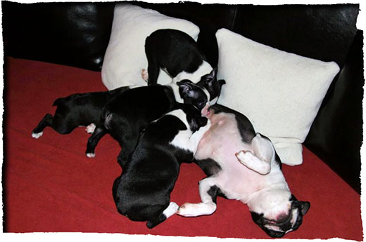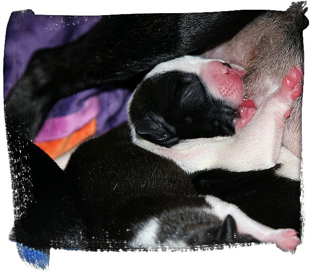 Es waren fünf stramme Rüden. Leider haben zwei kleine Rüden den Sprung ins Leben nicht geschafft!