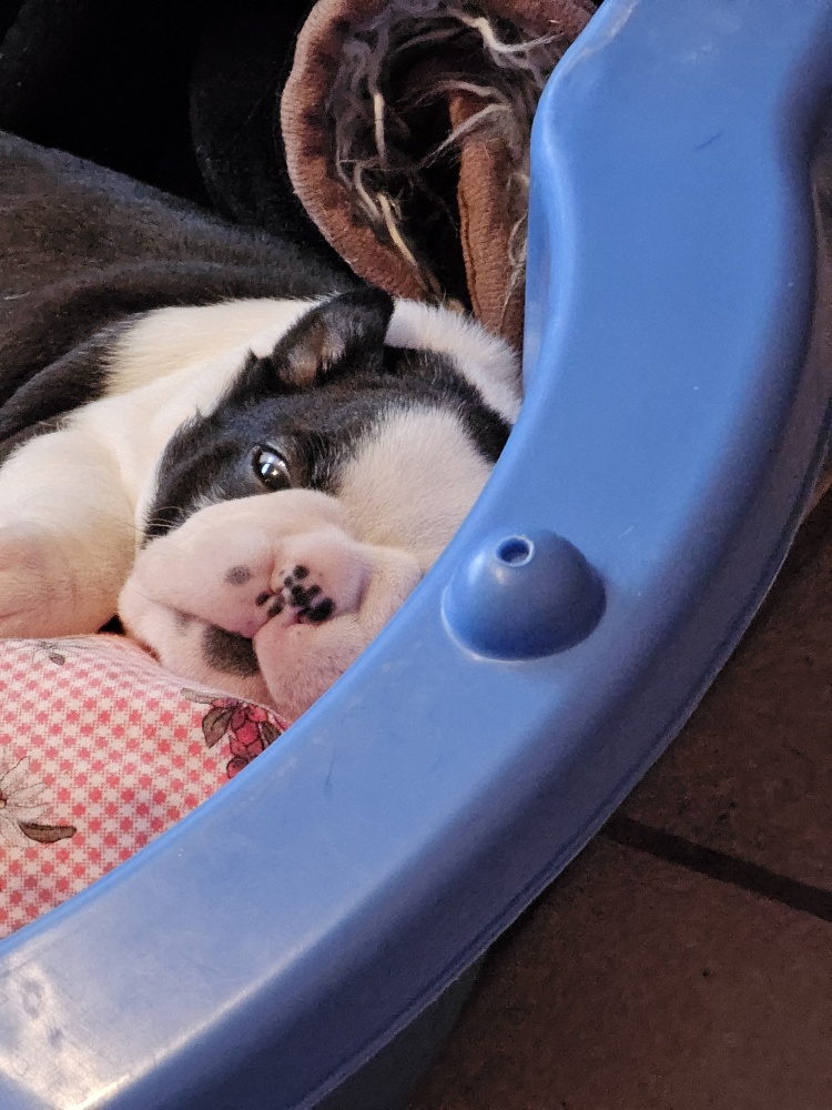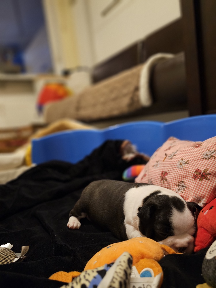 Nachdem wir letztes Jahr diese Verpaarung schon einmal vorgenommen hatten, was während der Geburt nach dem Besuch bei einem Tierarzt ganz in der Nähe (nicht mein Haustierarzt) in einem Desaster endete, freut uns dieses Ergebnis besonders! Wir haben letztes Jahr alle Welpen tot mit nach Hause genommen. Da der Pathologe jedoch seine Unbedenklichkeit der Verpaarungswiederholung schriftlich bestätigt hat, weil alle Welpen eigentlich kerngesund waren, haben wir es nochmal gewagt. Janis ist eine wundervolle kleine Mama und kümmert sich rührend. Ich freue mich so sehr darüber, ich kann es kaum in Worte fassen.