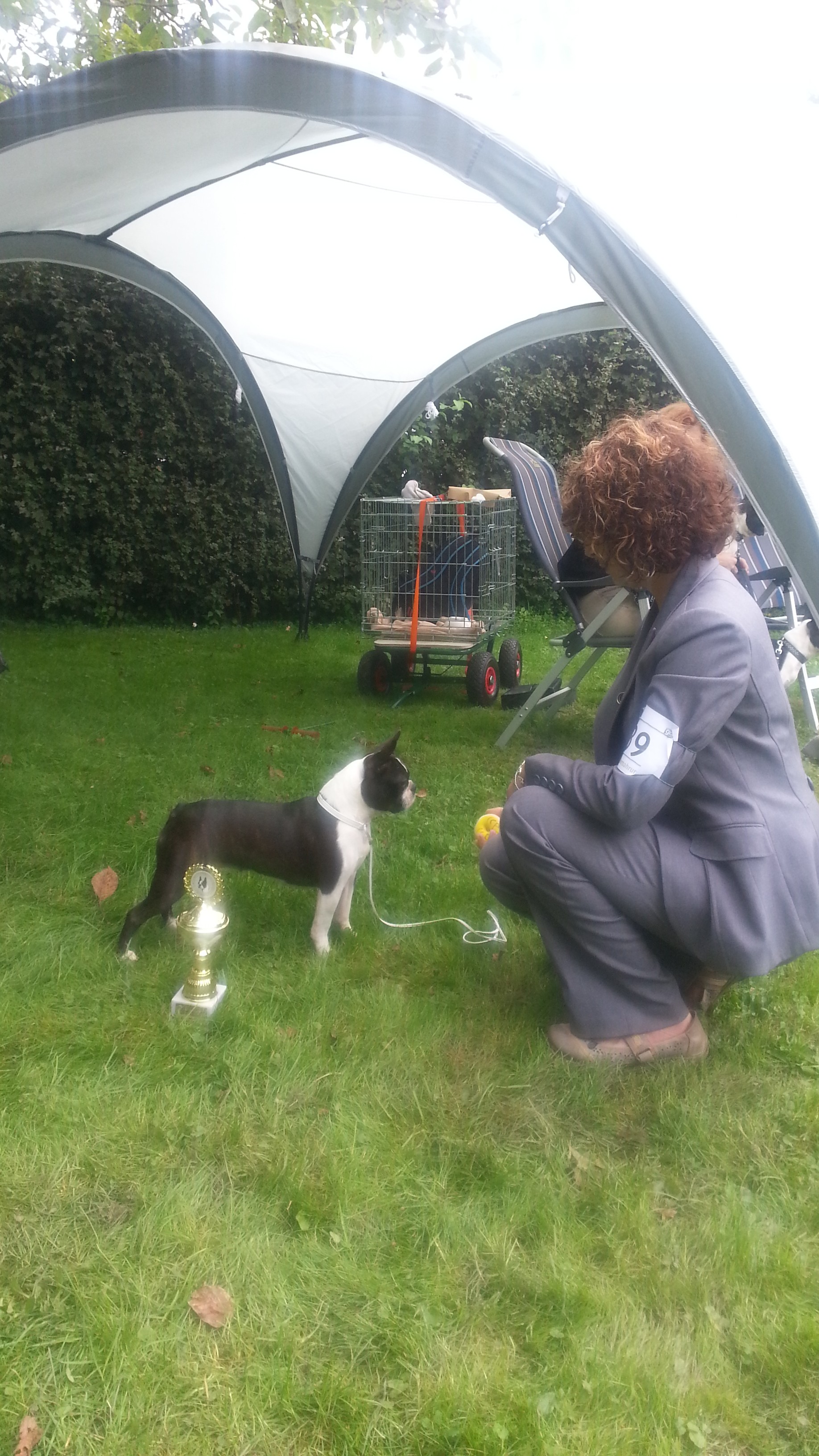 Die kleine Claire hatte ihre erste Ausstellung in der Erwachsenenklasse (Zwischenklasse) und erhielt die Bewertung V2, Res.VDH. Bin sehr stolz!