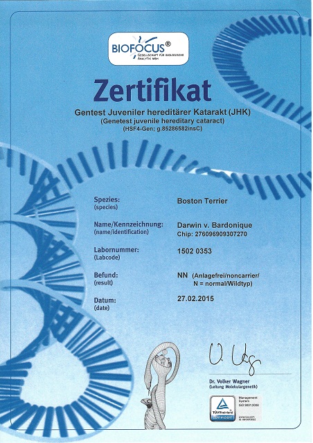 Darwin hat heute sein Ergebnis bzgl. der Untersuchung auf den Juvenilen Hereditären Katarakt erhalten. Wir freuen uns sehr!