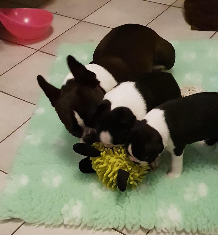 Unsere Babys sind da! Die Eltern sind V: MultiChampion Andriz Dandy's Elite und M: Frieda von Bardonique. 2 Rüden/3 Hündinnen, geboren am 22.08.2018. Die Geburtsgewichte waren von 184 gr. bis 246 gr.